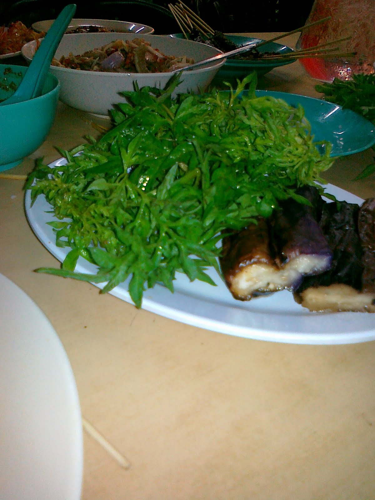 ulam dan ulaman.. tu ada terung dia bakar kot.. pergh nmpk sedap aku sambar laa.. then ada ulam raja...